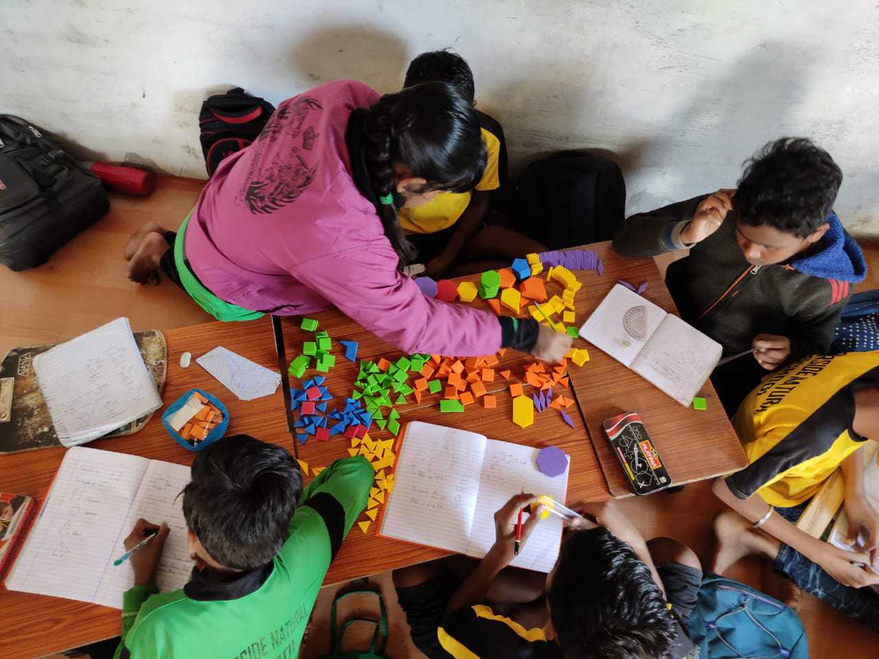Till Class 5, the school’s focus is on developing, reading, writing and numeracy skills. Our medium of instruction is Hindi but we have ensured that children get adequate exposure to reading, writing and communicating in English through films, in-person interactions and dedicated time every day to practise the language.