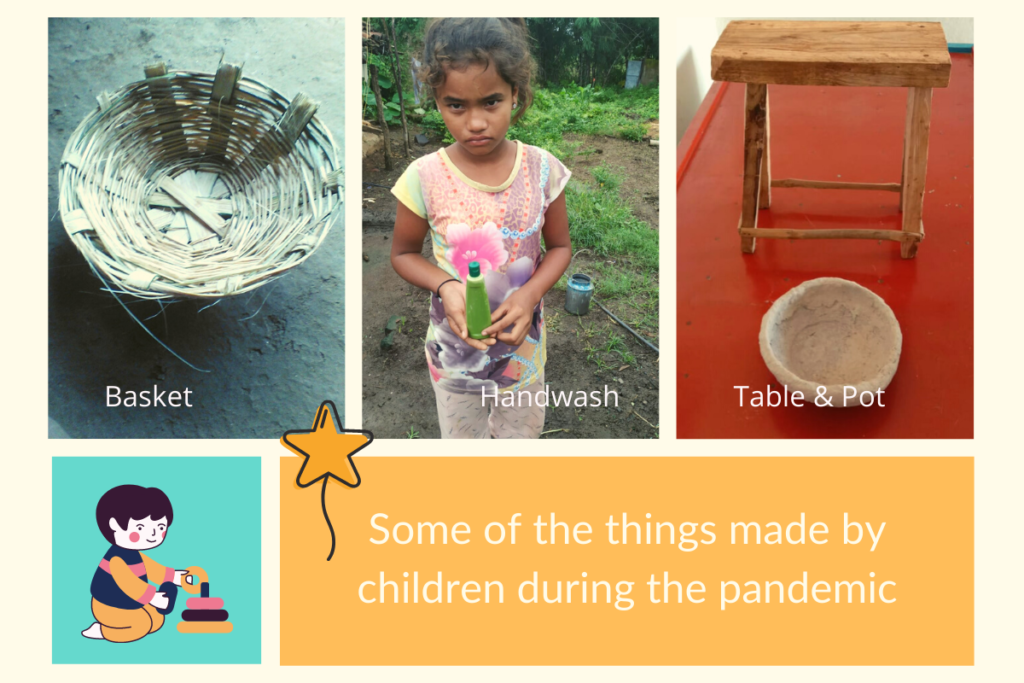 • All children had to take up at least 1 life skill project, where they learnt to make things of utility like bamboo articles, pickles, jams, hand wash, neem oil and many different things by using locally available materials. They also learnt to document the entire process.